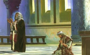 Trong đoạn Tin Mừng hôm nay, Đức Giêsu đã kể cho chúng ta dụ ngôn về hai nhân vật ở hai địa vị khác nhau. Một người thuộc nhóm Pharisêu vốn nổi tiếng về việc giữ luật khắt khe, được thiên hạ xem là người đạo đức thánh thiện. Vì thế ông tự hào cho mình là công chính, khi kể lể nhiều công trạng của mình mình với Chúa và khinh chê người khác. Nhưng ông đã không được kể là công chính. Còn người thu thuế, kẻ bị xem là tội lỗi vì cộng tác với ngoại bang và gian dối, là kẻ bị loại trừ trong xã hội. Nhưng ông lại được nên công chính. Bởi vì trước nhan Thiên Chúa, ông đã tự ý thức thân phận tội lỗi của mình, và ăn năn hối cải và cầu xin lòng thương xót của Thiên Chúa.