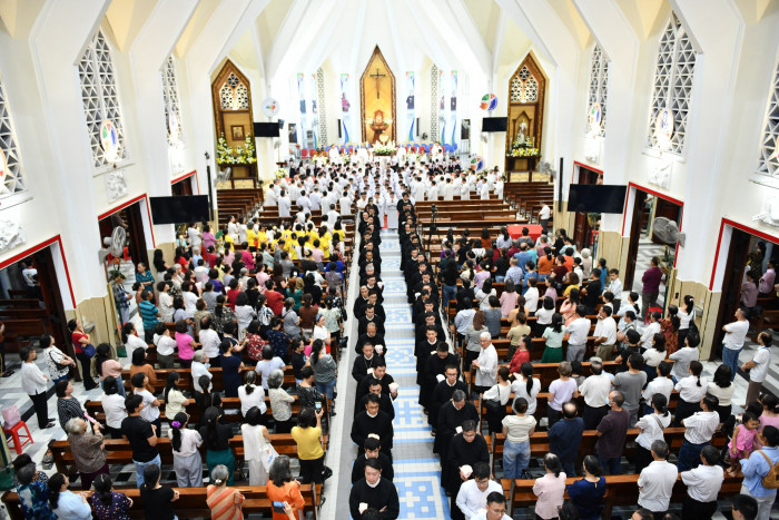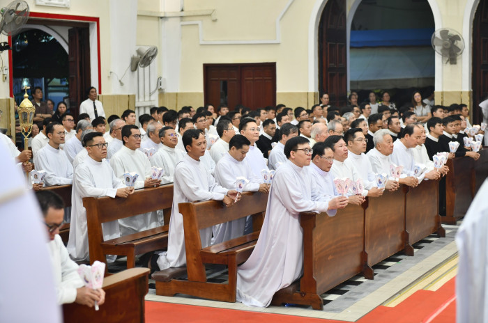 Cha Đaminh Nguyễn Đức Thông, Giám tỉnh Tỉnh Dòng Chúa Cứu Thế Việt Nam đã chủ sự giờ Chầu và cung nghinh Thánh Thể bắt đầu ba ngày kết thúc Năm Thánh kỷ niệm 100 năm Dòng Chúa Cứu Thế hiện diện tại Việt Nam (1925-2025).