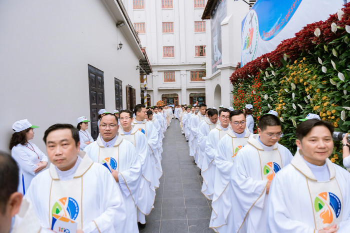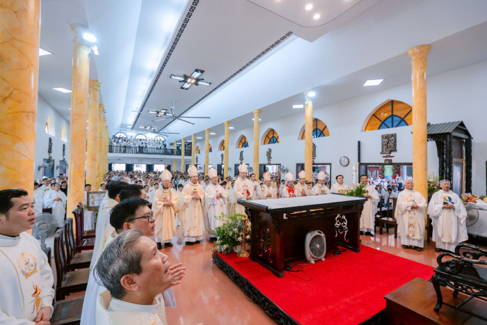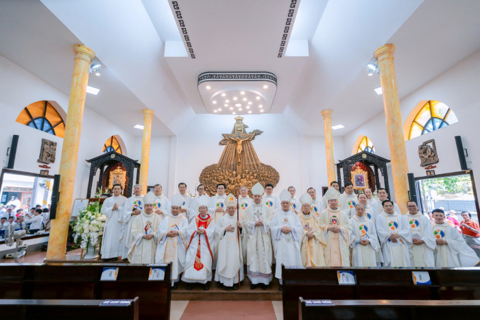 Cùng đồng tế với Đức Hồng Y Phêrô có Đức Tổng Giám Mục Marek Zalewski, Đại diện Tòa Thánh tại Việt Nam; Đức cha Đaminh Hoàng Minh Tiến, Giám mục Giáo phận Hưng Hóa; Đức cha Tôma Vũ Đình Hiệu, Giám mục Giáo phận Bùi Chu; Đức cha Giuse Châu Ngọc Tri, Giám mục Giáo phận Lạng Sơn-Cao Bằng; Đức cha Giuse Vũ Công Viện, Giám mục phụ tá Tổng giáo phận Hà Nội; Đức cha Laurensô Chu Văn Minh, nguyên Giám mục phụ tá Tổng Giáo phận Hà Nội; Đức cha Phêrô Nguyễn Văn Đệ, nguyên Giám mục Giáo phận Thái Bình. Ngoài ra còn có cha Đaminh Nguyễn Đức Thông, Giám tỉnh DCCT Việt Nam và khoảng 130 linh mục là tu sĩ DCCT cũng như các dòng tu và linh mục triều thuộc các giáo phận; hơn 60 tu sĩ nam nữ và khoảng 1,700 anh chị em giáo dân.