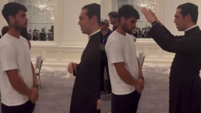 Carlos Alcaraz – chàng trai 22 tuổi người Tây Ban Nha, hiện là một trong những tay vợt hàng đầu thế giới – mới đây được nhìn thấy lãnh nhận phép lành từ một linh mục tại New York, ngay trước khi giải US Open khởi tranh.