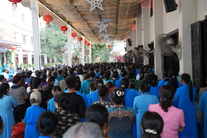 Từ 6 giờ sáng các đoàn xe từ khắp nơi: miền xuôi, miền ngược và vùng nội đô đã tấp nập kéo về ngôi đền ĐMHCG Thái Hà thân thương, như một điểm hẹn của ngày đầu năm mới hội ngộ.