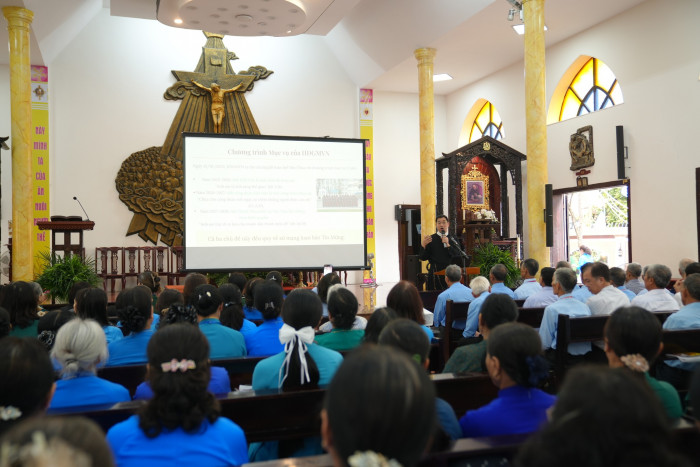 Đúng 8 giờ, Cha Bề trên Giuse Nguyễn Văn Hội đã chia sẻ với chủ đề: “Mỗi Kitô hữu là một môn đệ thừa sai.” Qua những lời huấn dụ sâu sắc, Cha mời gọi mỗi hội viên ý thức rằng theo Chúa không chỉ dừng lại ở việc tham dự phụng vụ hay đọc kinh sốt sắng, nhưng còn là dấn thân loan báo Tin Mừng bằng chính đời sống yêu thương, phục vụ và làm chứng cho Chúa nơi gia đình, làng xóm, quê hương, giữa cộng đoàn giáo xứ và cả những nơi làm việc ngoài xã hội. Người môn đệ thừa sai đích thực là người biết ra khỏi chính mình, bước đến với anh chị em, nhất là những ai nghèo khổ và bị bỏ rơi.