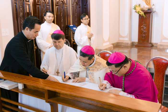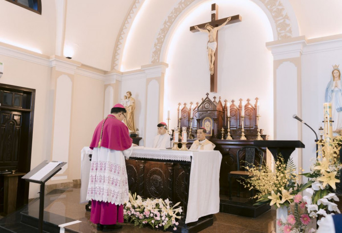 Vào lúc 18g00 thứ Hai, ngày 26/5/2025, tại Nhà Nguyện Tòa Giám mục Hưng Hóa, Đức Giám mục Phụ tá Tân cử Phaolô Nguyễn Quang Đĩnh đã tuyên xưng đức tin và tuyên thệ trung thành với Giáo Hội trong giờ Kinh Chiều.