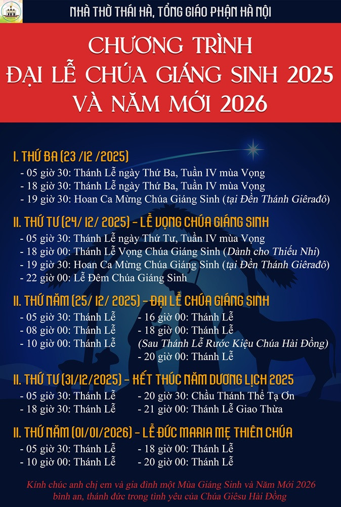 NHÀ THỜ THÁI HÀ: CHƯƠNG TRÌNH ĐẠI LỄ CHÚA GIÁNG SINH 2025