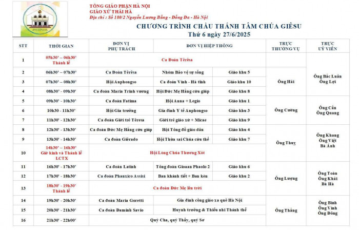 Thái Hà: Chương trình Lễ kính Thánh Tâm Chúa Giêsu Giáo Xứ Thái Hà, NHÀ DÒNG & GIÁO XỨ, THÔNG BÁO Share Facebook Twitter Pinterest