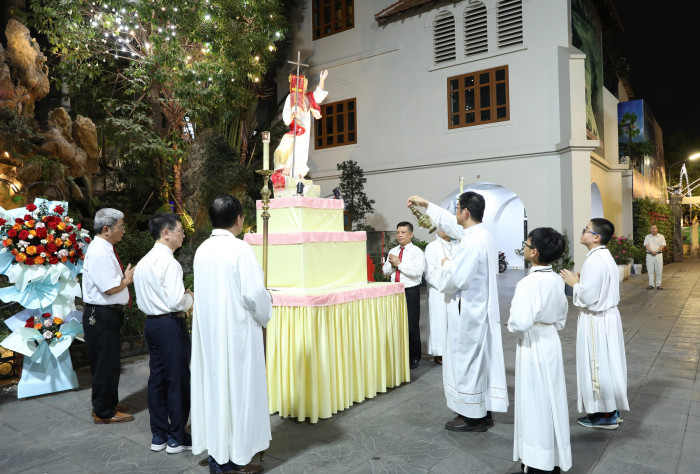 Sau Thánh lễ 18g30 thứ Tư Tuần II Phục Sinh, như thường lệ, Giáo xứ Thái Hà cử hành nghi thức Đi Đường Ánh Sáng xung quanh khuôn viên nhà thờ trong bầu khí trang nghiêm và sốt sắng.