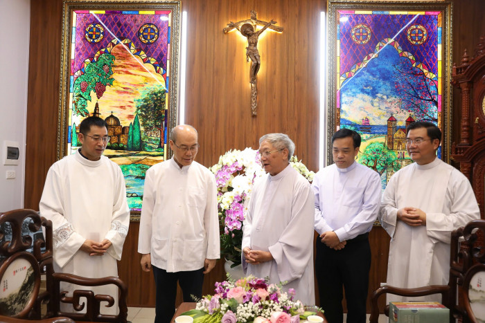 Cha Đaminh Nguyễn Đức Thông, Giám tỉnh Tỉnh DCCT Việt Nam cùng cha Bề trên Tu viện Hà Nội đã đón tiếp Đức Tổng Giuse cùng đoàn.
