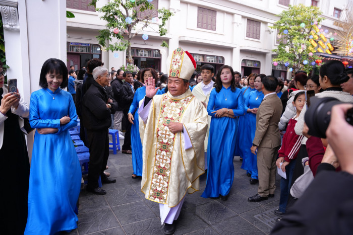 Từ sáng sớm, đông đảo các đoàn hành hương từ khắp nơi, trong và ngoài thành phố Hà Nội, đã quy tụ về bên Mẹ để cầu nguyện và xin ơn lành cho năm mới, dâng lên Mẹ những ước nguyện đơn sơ mà tha thiết của đời mình.