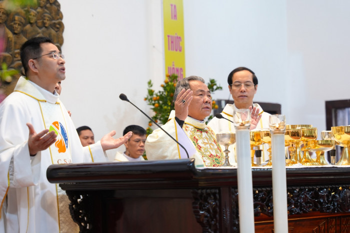 Trước khi kết thúc Thánh lễ, cha Giuse Nguyễn Văn Hội, Bề trên Tu viện kiêm Chính xứ Giáo xứ Thái Hà, đã chúc mừng năm mới Đức cha và tri ân Đức cha, quý cha, quý tu sĩ cùng toàn thể cộng đoàn.