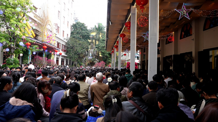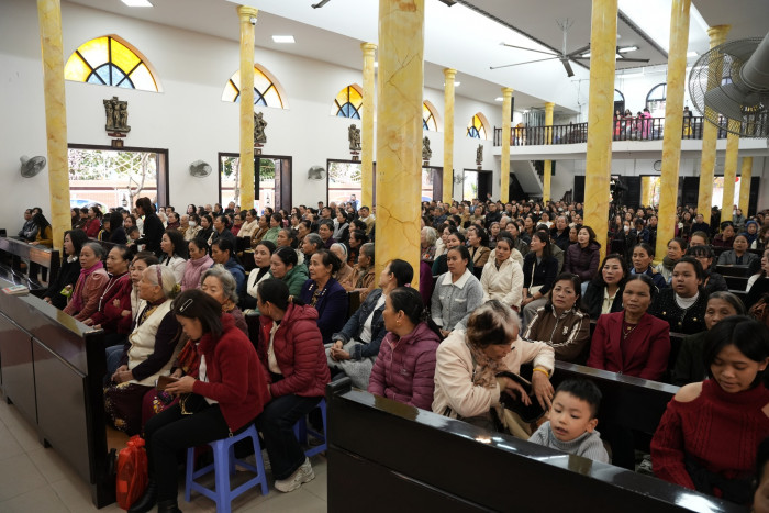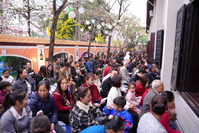 Từ sáng sớm, đông đảo các đoàn hành hương từ khắp nơi, trong và ngoài thành phố Hà Nội, đã quy tụ về bên Mẹ để cầu nguyện và xin ơn lành cho năm mới, dâng lên Mẹ những ước nguyện đơn sơ mà tha thiết của đời mình.