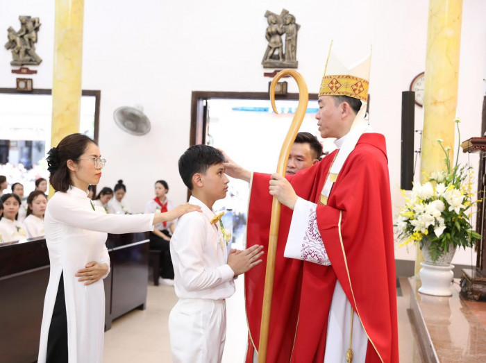 Chúa Nhật, ngày 03.08.2025 – trong bầu khí linh thiêng và trang nghiêm, 180 bạn thiếu nhi và 8 người trưởng thành đã được đón nhận tràn đầy Thần Khí của Thiên Chúa trong Thánh lễ ban Bí tích Thêm Sức do Đức Cha Giuse Vũ Công Viện – Giám mục phụ tá Tổng Giáo phận Hà Nội chủ sự.