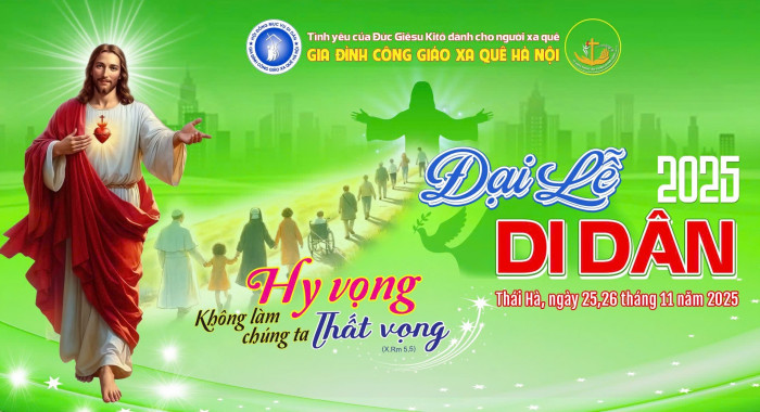 Trong tâm tình tạ ơn Thiên Chúa, Gia Đình Công Giáo Xa Quê Hà Nội hân hoan tổ chức ĐẠI LỄ DI DÂN 2025 vào hai ngày 25-26/11/2025 tại Nhà thờ Giáo xứ Thái Hà (180/2 Nguyễn Lương Bằng, Đống Đa, Hà Nội).