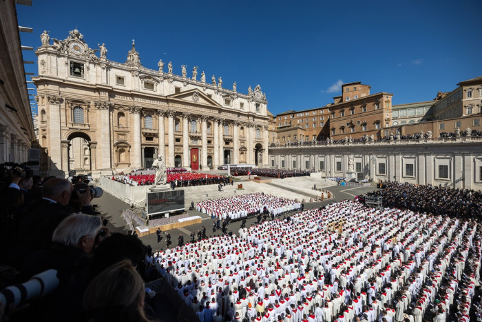 Sáng thứ Bảy ngày 26/4/2025, tại thềm Đền thờ Thánh Phêrô, Đức Hồng y Niên trưởng Hồng y đoàn, Giovanni Battista Re, đã chủ sự Thánh lễ an táng Đức Thánh Cha Phanxicô, với khoảng 200 Hồng y, 700 Giám mục và 5.000 linh mục đồng tế, trước sự hiện diện tham dự của hơn 200 ngàn tín hữu đến từ nhiều nước trên thế giới.