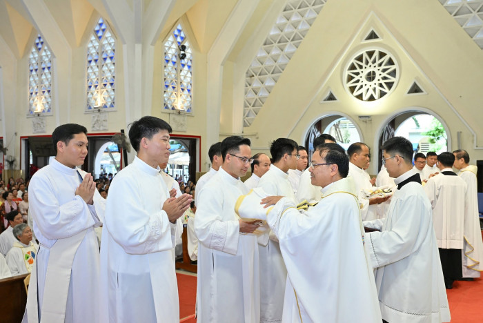 Sài Gòn, sáng 2/7/2025 — Vào lúc 8g30 sáng nay, tại Đền Đức Mẹ Hằng Cứu Giúp (DCCT Sài Gòn), Thánh lễ phong chức Linh mục và Phó tế của Tỉnh Dòng Chúa Cứu Thế Việt Nam đã được cử hành cách long trọng và trang nghiêm. Chủ sự Thánh lễ là Đức cha Giuse Bùi Công Trác, Giám mục Phụ tá Tổng Giáo phận Sài Gòn.