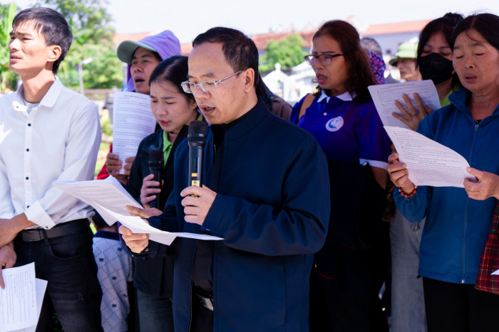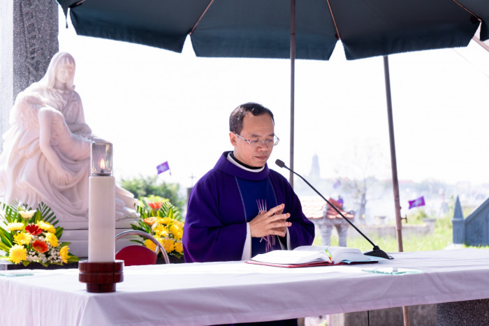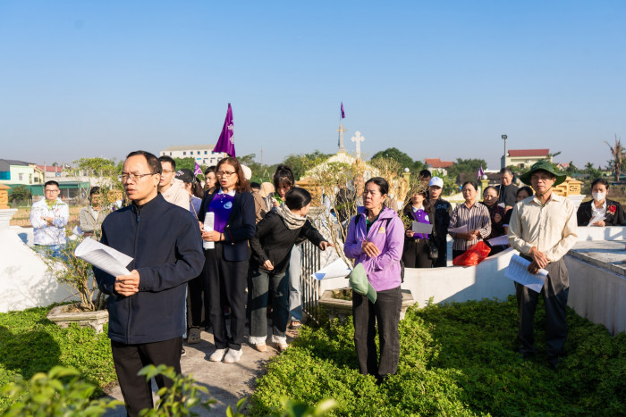 Nhóm Hòa Mục có 40 thành viên cùng lên đường với đoàn TGP hướng tới nghĩa trang giáo xứ Xuân Bảng nơi có hơn 14 nghìn thai nhi đang nằm nghỉ. Các thành viên cùng quy tụ thắp hương và đọc kinh cầu nguyện.