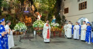 Cuối Thánh lễ lúc 20g00, cha Phao-lô nhắn nhở cộng đoàn và đặc biệt là các bạn trẻ dành thời gian nhìn lại mình và tự hỏi: Đam mê của tôi là gì? Thêm vào đó, chúng ta cần diễn tả vẻ đẹp của mình nơi mọi người ra sao? Và tôi đã nhẫn nại như thế nào? “Chúng ta hãy làm điều này trong tình yêu của Chúa Ki-tô”. Cuối cùng là đưa ra quyết tâm, chọn một khuôn mặt yêu dấu trong gia đình của mình để thể hiện vẻ đẹp của mình.