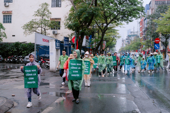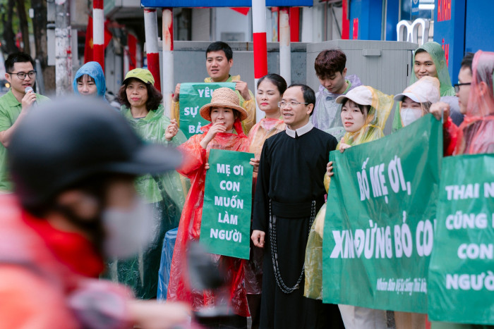 Ngay từ sớm, các bạn trẻ đã quy tụ về nhà thờ Thái hà, khoác trên mình màu áo xanh quen thuộc, màu áo của hy vọng và của tình yêu dành cho sự sống. Trong tiếng mưa rơi đoàn tuần hành vẫn kiên trì tiến bước, mang theo những biểu ngữ và thông điệp kêu gọi tôn trọng, bảo vệ và nâng đỡ sự sống con người ngay từ khi còn trong lòng mẹ.